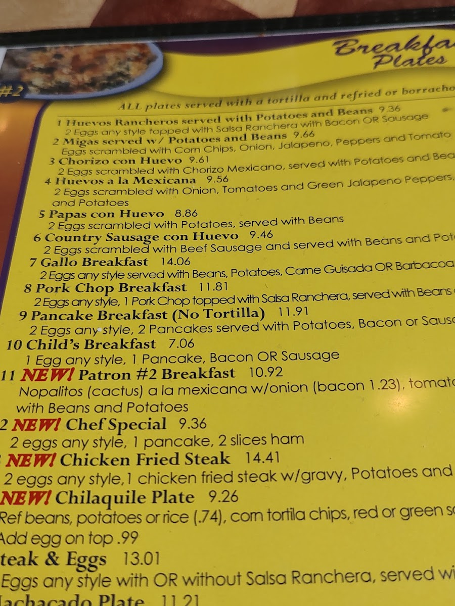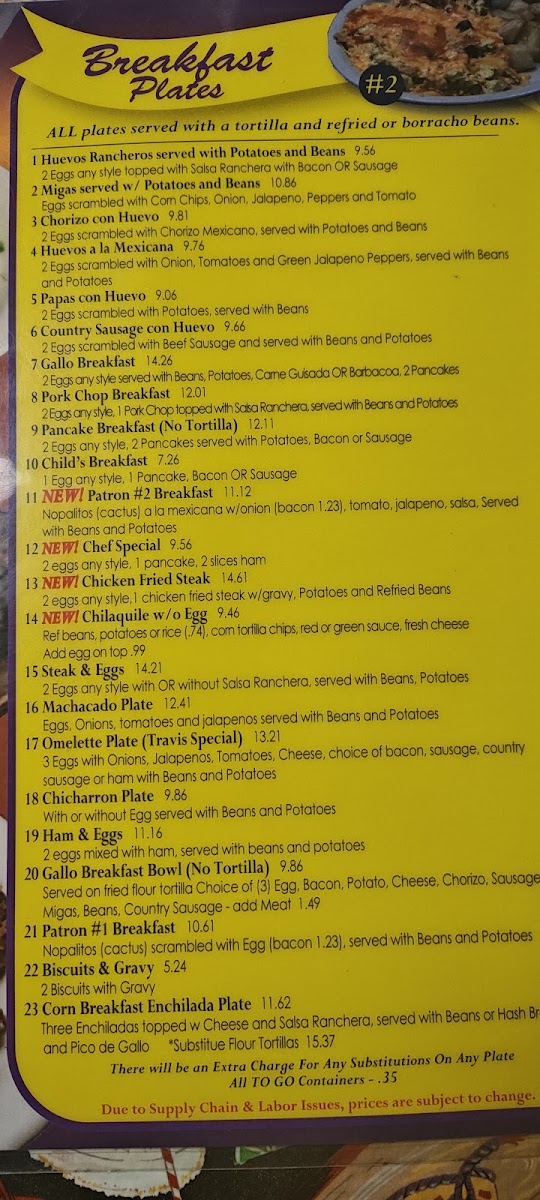 Two eggs scrambled with chorizo mexicano, served with potatoes and beans.