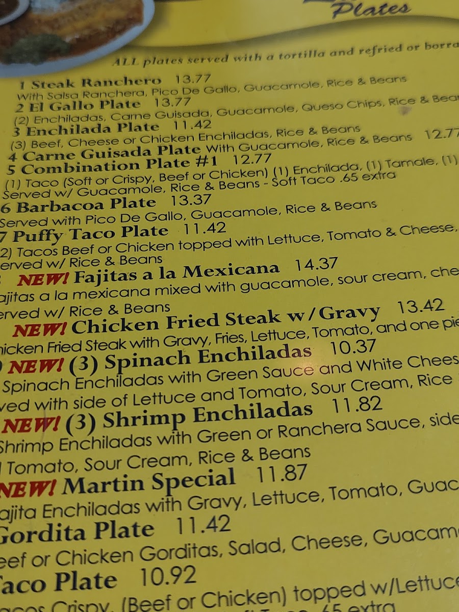 (Two) enchiladas, carne guisada, guacamole, queso chips, rice and beans.